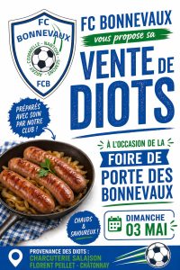 à l’occasion de la foire de Porte-des-Bonnevaux venez déguster les diots cuisinés par le FC Bonnevaux 😀